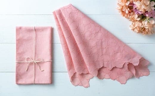 さくら染めレースひざ掛け:北上の「桜」を主原料とした草木染料で染色した手作り作品です。