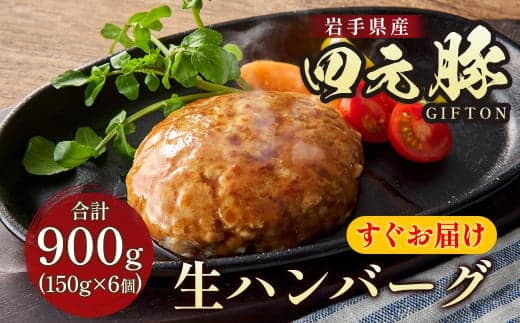 全国初!!必要な時にすぐ届く!希少な国産四元豚の甘みを感じる柔らかハンバーグ!!\\すぐお届け//岩手ブランド豚 四元豚 生ハンバーグ ギフト 150g×6個 900g GIFTON【アスチャク 対象品】 豚肉 国産 お歳暮 お中元 おせち 贈答 焼肉 バーベキュー 料理 おつまみ 晩酌 お弁当 冷凍【北上市 ごえん株式会社 C0222-AC】