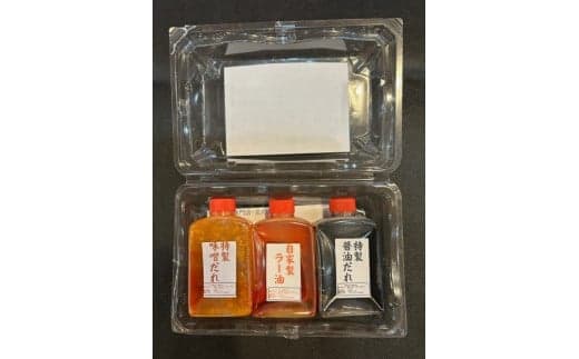 - 1パック 24g×20個(480g)が2パック 餃子タレ(「醤油だれ」「自家製ラー油」「特製味噌だれ」3種類)各1本80g×3本(240g) 計1200g